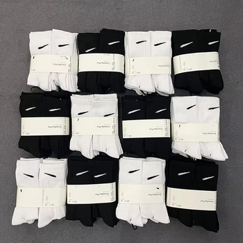 One Card 6 Pares de tubo largo Crew Calcetines de secado rápido a media pantorrilla Negro Blanco Toalla gruesa Solesbasketball Running Calcetines deportivos