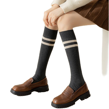 Calcetines JK de invierno para mujer, nuevo estilo japonés, Color sólido, doble raya, calcetines hasta la rodilla, tubo largo, calcetines Retro holgados, longitud de la tripulación