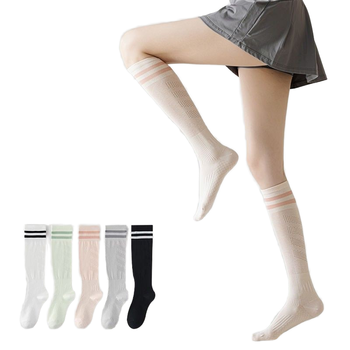 महिलाओं के शीतकालीन जैक नए जापानी शैली ठोस रंग डबल स्ट्रिप घुटने-उच्च मोजे लंबी ट्यूब रेट्रो स्लॉच